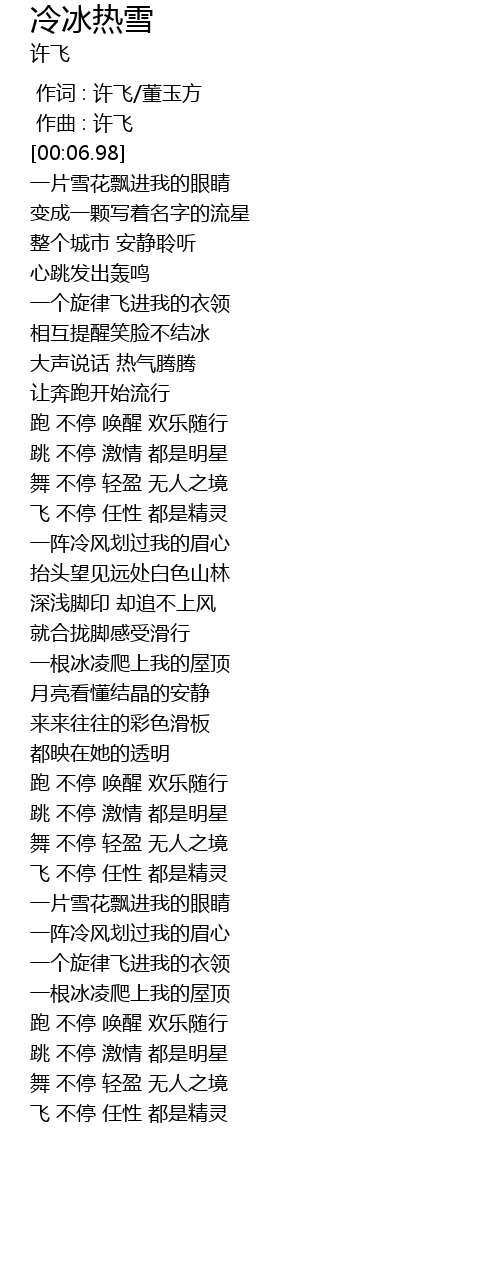 | [03:03.91] | 飞 不停 任性 都是精灵 |