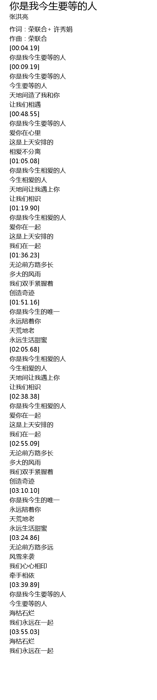 | [03:40.44] | 你是我今生要等的人 |