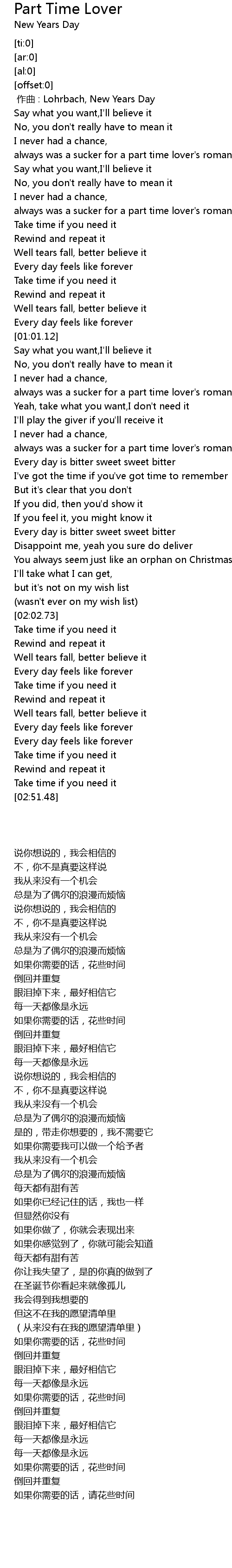 | [00:21.11] | always was a sucker for a part time lover's romance |