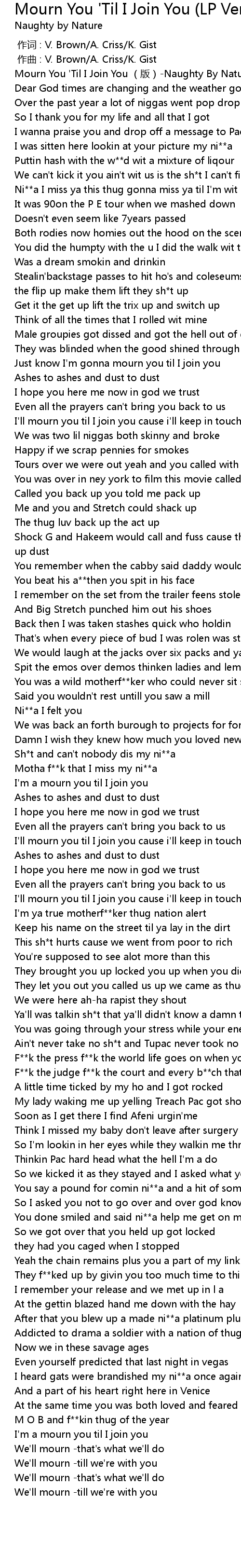 | [00:00.00] | Mourn You ' Til I Join You ban Naughty By Nature |
