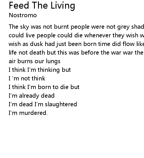 | The sky was not burnt people were not grey shadows children did laugh people could live people could die whenever they wish whenever they had to however they wish as dusk had just been born time did flow like water not blood blood meant life not death but this was before the war war the dead feed the living deadly air burns our lungs | |