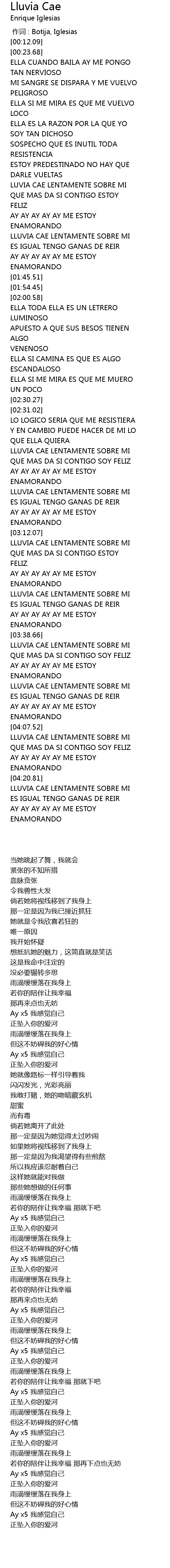 | [00:00.00] | 作词 : Botija, Iglesias |
