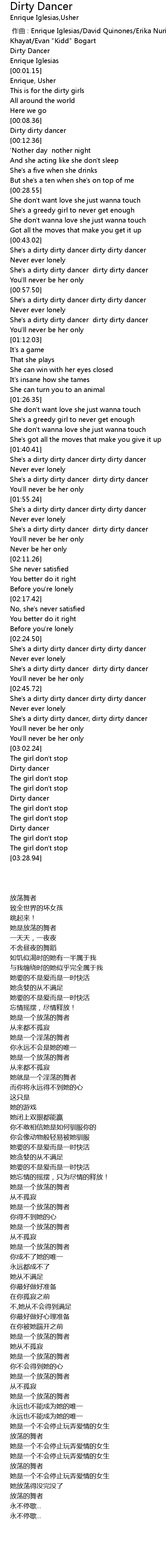 | [02:39.75] | She's a dirty dirty dancer dirty dirty dancer |