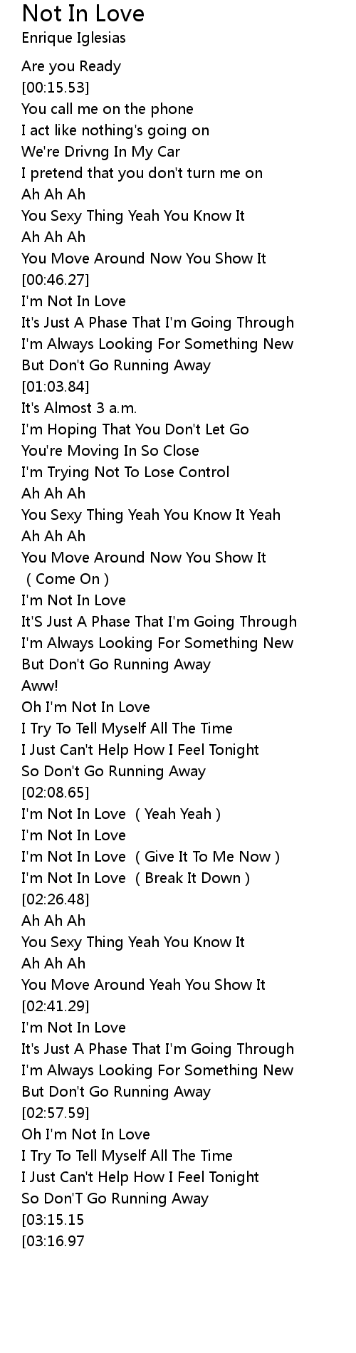 | [02:59.15] | Oh I'm Not In Love |
