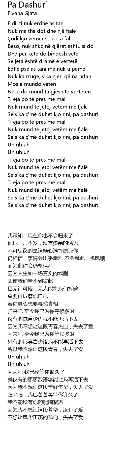 | [02:33.81] | Se s' ka ' m duhet kjo rini, pa dashuri |