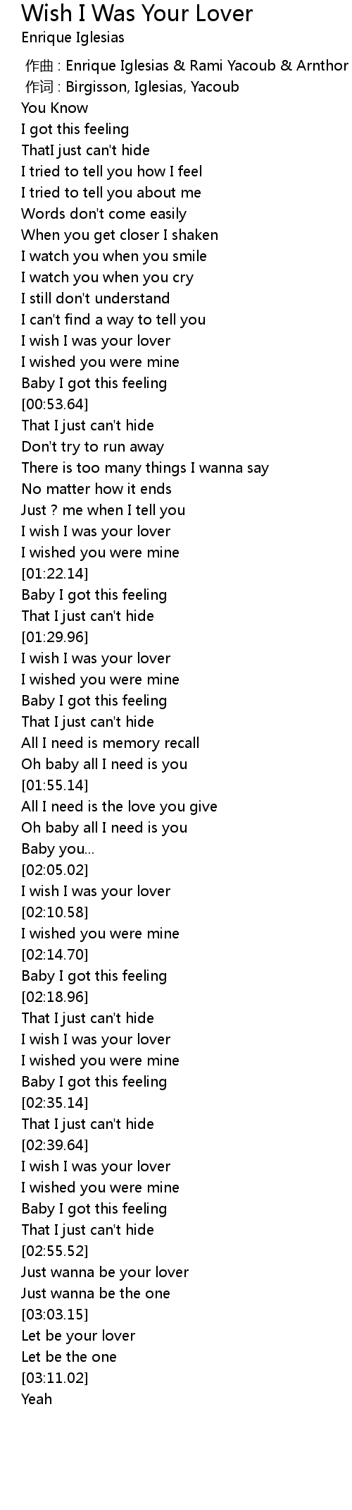 | [02:24.52] | I wish I was your lover |
