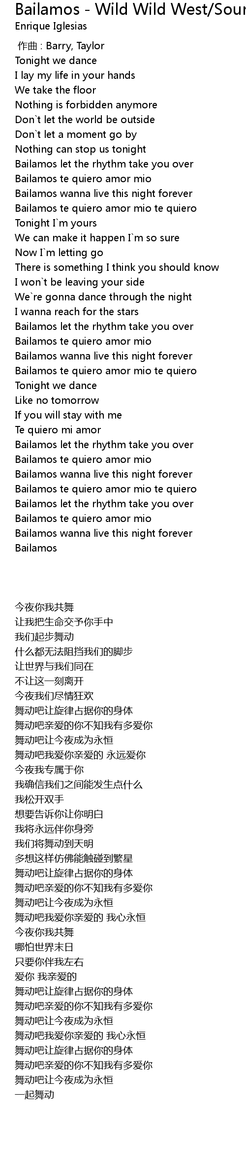 | Song | Bailamos - Wild Wild West/Soundtrack Version |
