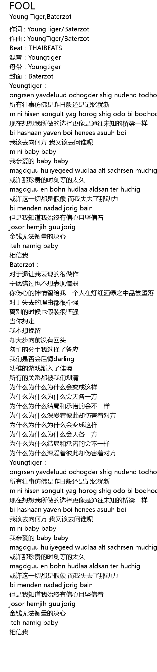 | Album | FOOL (YoungTiger FT. Baterzot)Prod By Tiger |