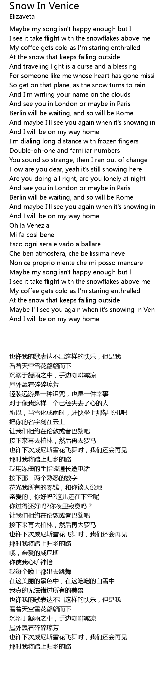 | [00:52.59] | And maybe I'll see you again when it's snowing in Venice |