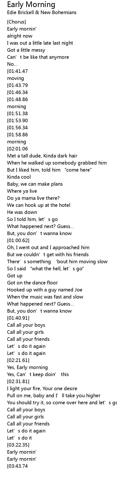 | [03:31.55] | Early mornin’ |
