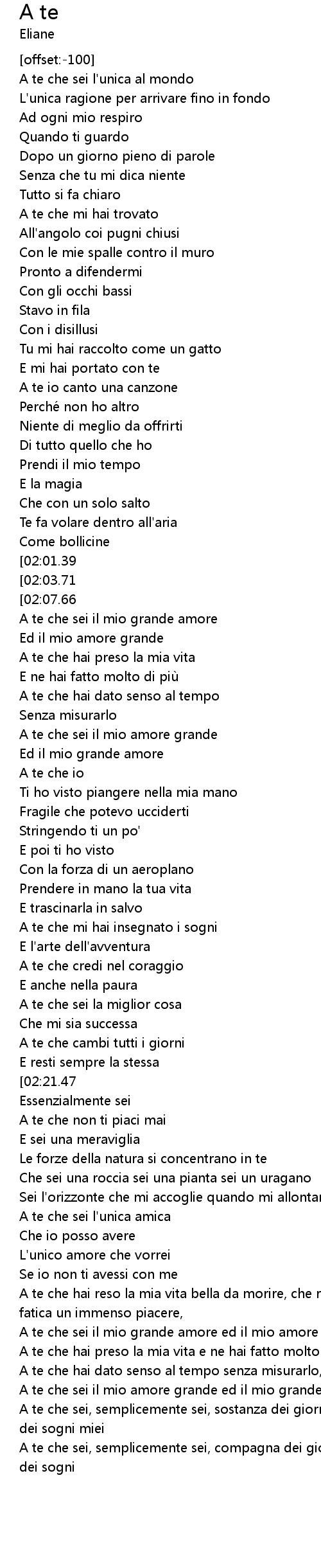| [03:01.63] | A te che hai preso la mia vita e ne hai fatto molto di piu, |
