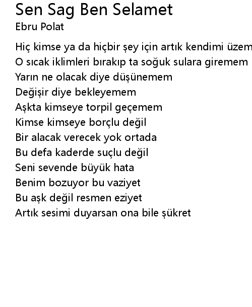 | Hiç kimse ya da hiçbir şey için artık kendimi üzemem | |