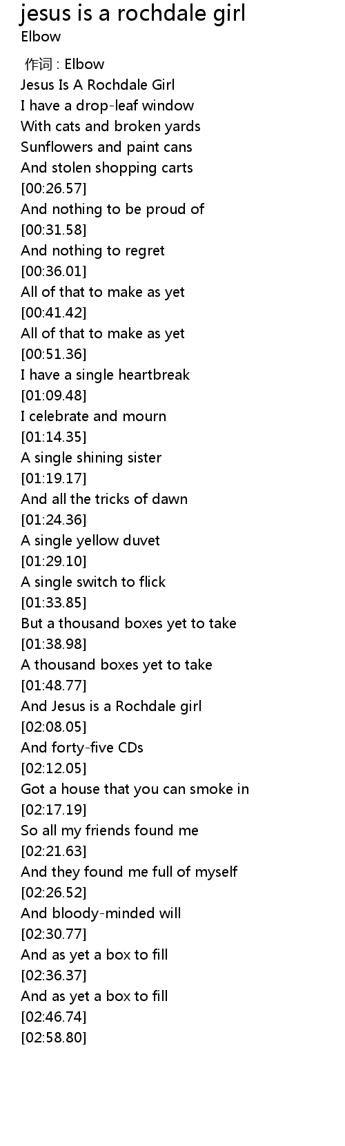 | [02:04.95] | And Jesus is a Rochdale girl |
