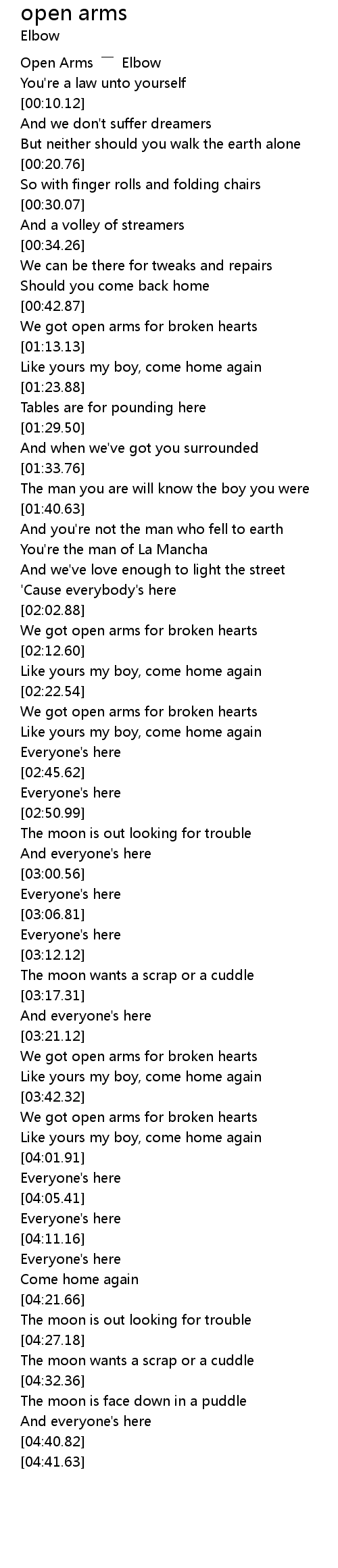 | [00:00.93] | Open Arms ―― Elbow |
