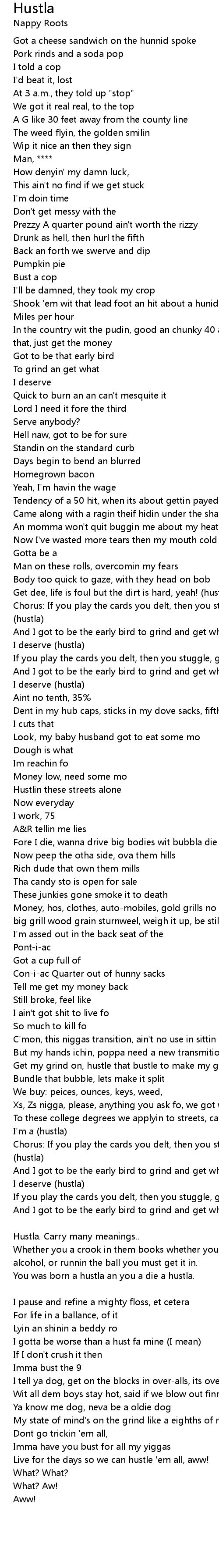 Chorus: If you play the cards you delt, then you stuggle, got to put in work (hustla) |