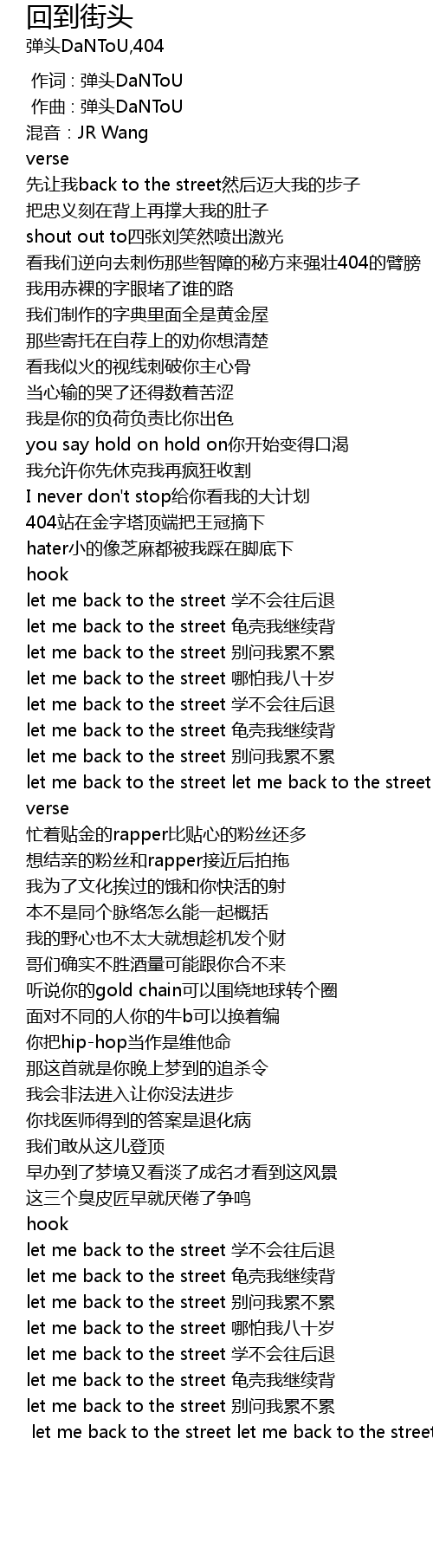 | [01:18.93] | let me back to the street 学不会往后退 |