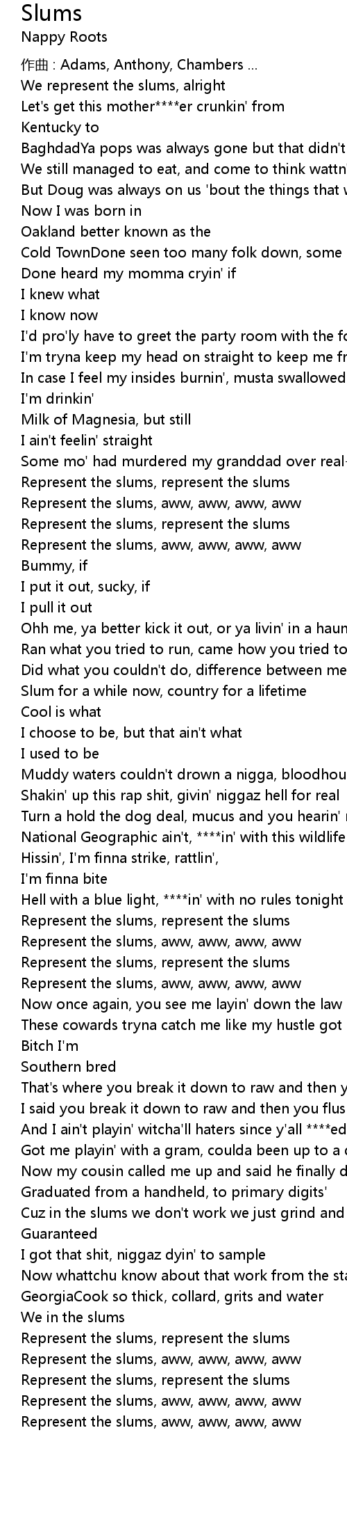 | Represent the slums, represent the slums | |