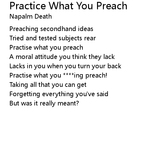 | Practise what you ****ing preach! | |