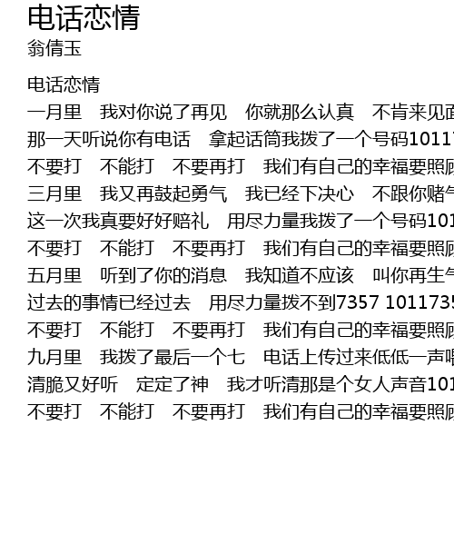 | [00:30] | 那一天听说你有电话 拿起话筒我拨了一个号码10117357 |