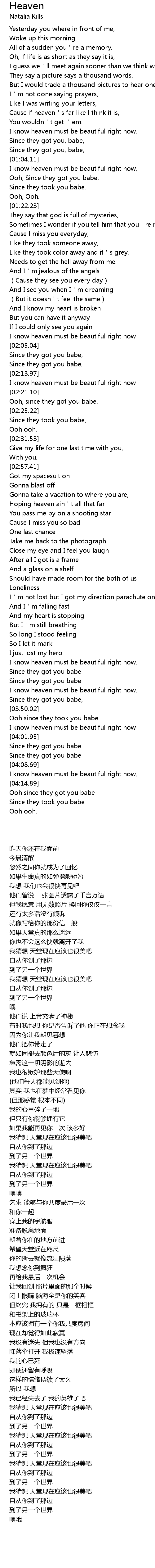 | [02:15.98] | I know heaven must be beautiful right now |