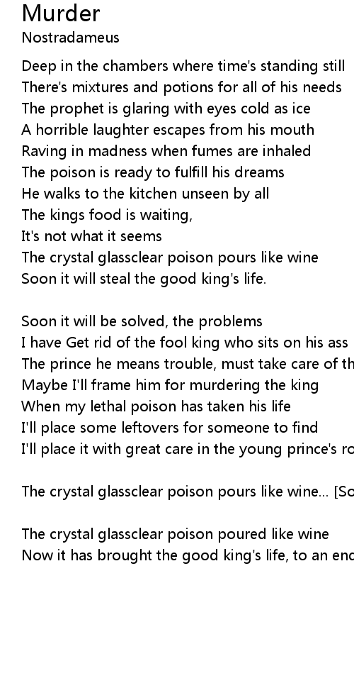 The crystal glassclear poison pours like wine |