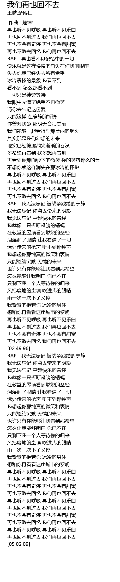 | [02:44.43] | 再也不敢去回忆 我们再也回不去 |