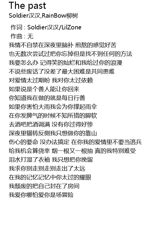 | [00:00.000] | 作词 : Soldier汉汉/LilZone |