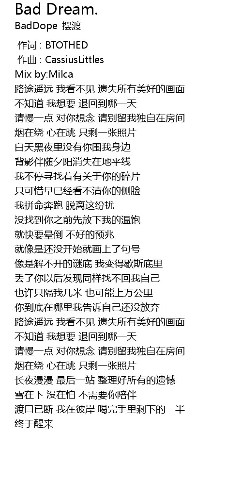 | [00:01.000] | zuò qǔ : CassiusLittles |