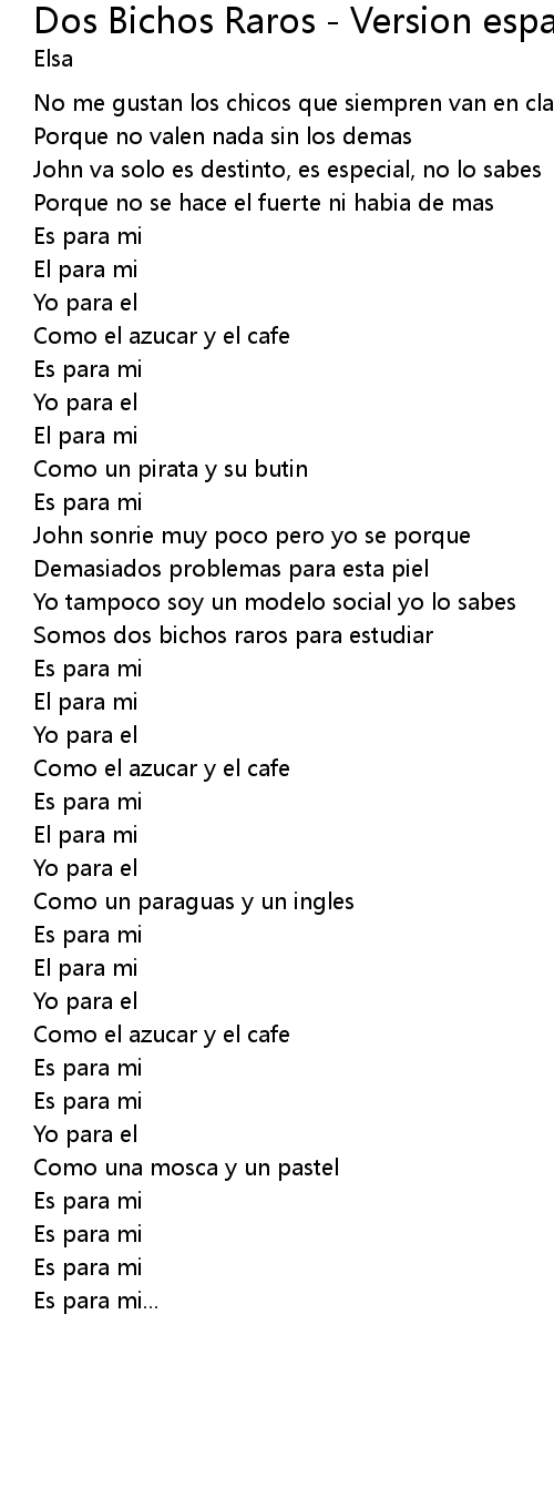 Dos Bichos Raros - Version espagnole de Jamais nous Lyrics