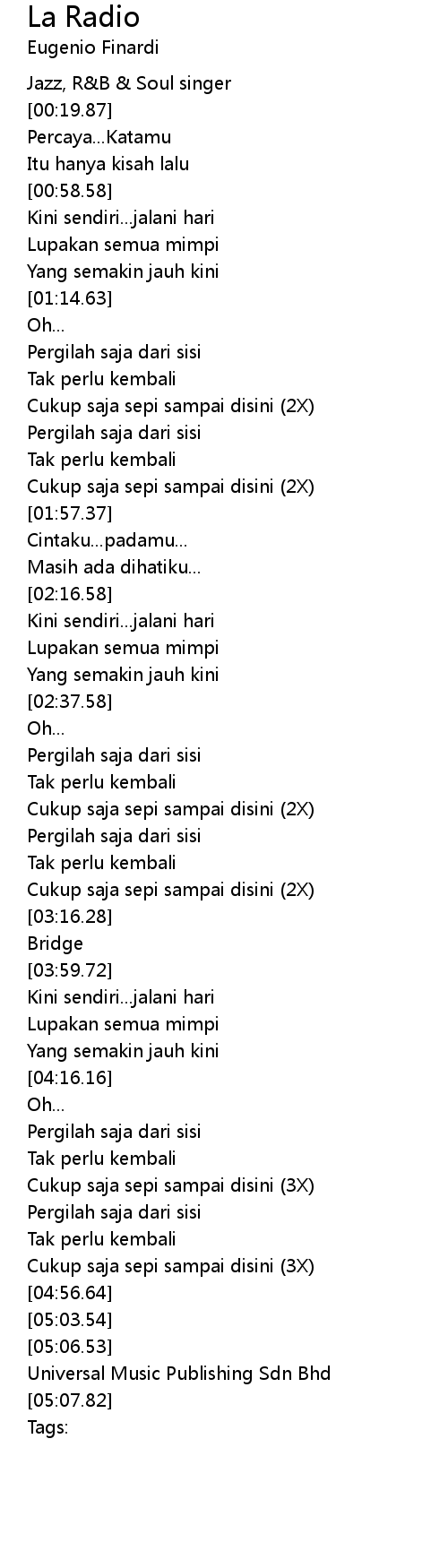 [04:53.45] Cukup saja sepi sampai disini (3X)