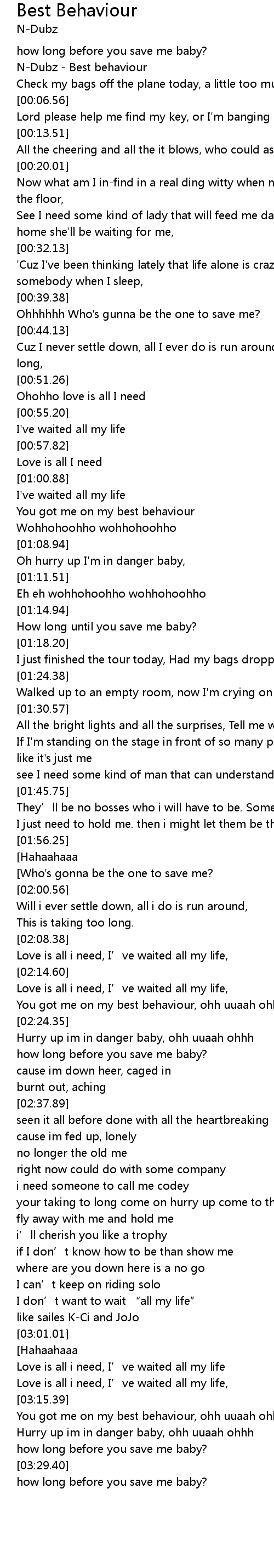 | [02:21.10] | You got me on my best behaviour, ohh uuaah ohhh |