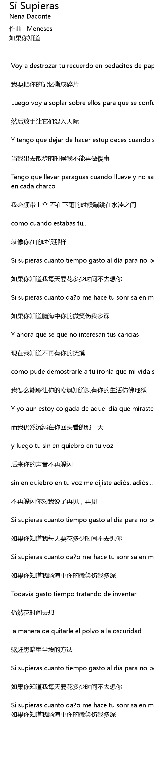 | Si supieras cuanto tiempo gasto al di a para no pensar en ti | |