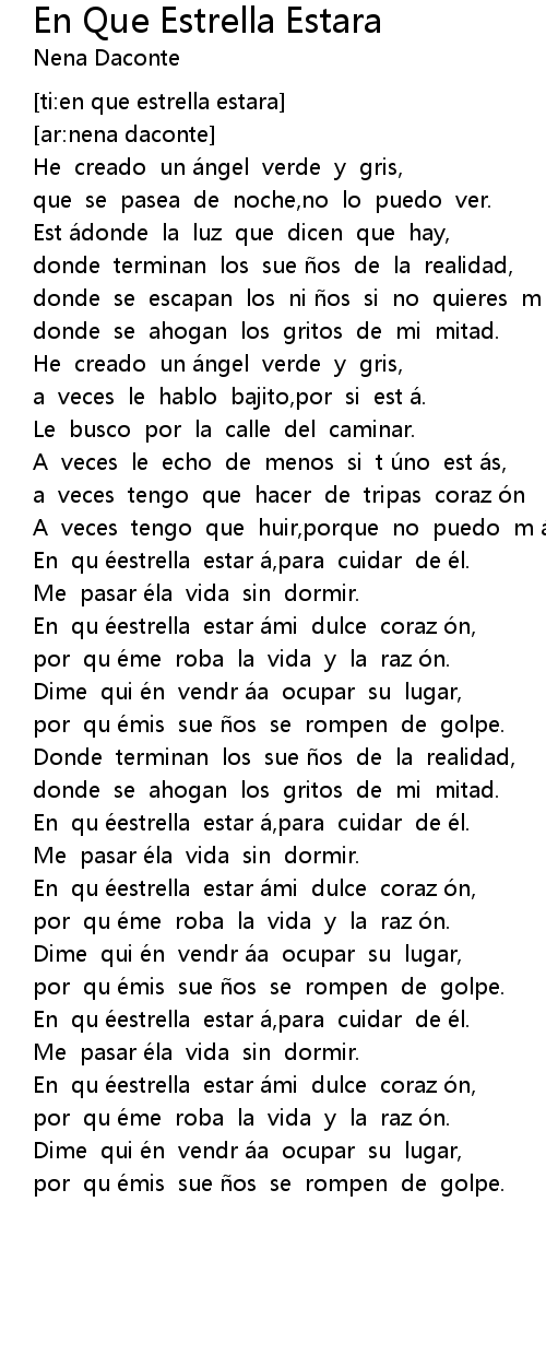 | [00:50.48] | En qu e estrella estar a mi dulce coraz o n, |