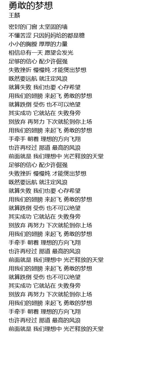 | [01:23.000] | 用我们的翅膀 来起飞 勇敢的梦想 |