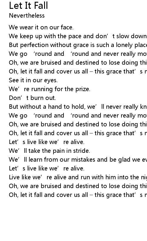 | Oh, let it fall and cover us all this grace that' s not our own. |