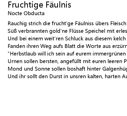| Und bei einem weit' ren Schluck aus diesem kelch fruchtiger F ulnis | |