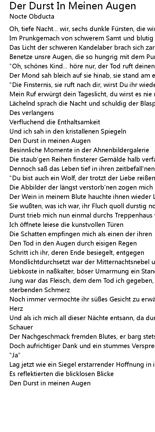 | Song | Der Durst In Meinen Augen |