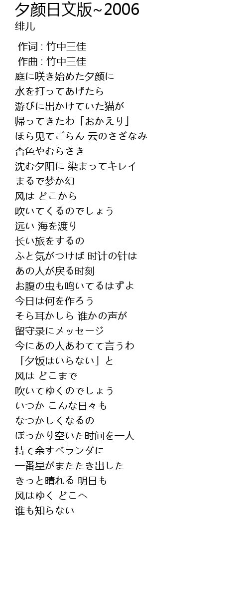 | [00:26.209] | 庭に咲き始めた夕颜に |