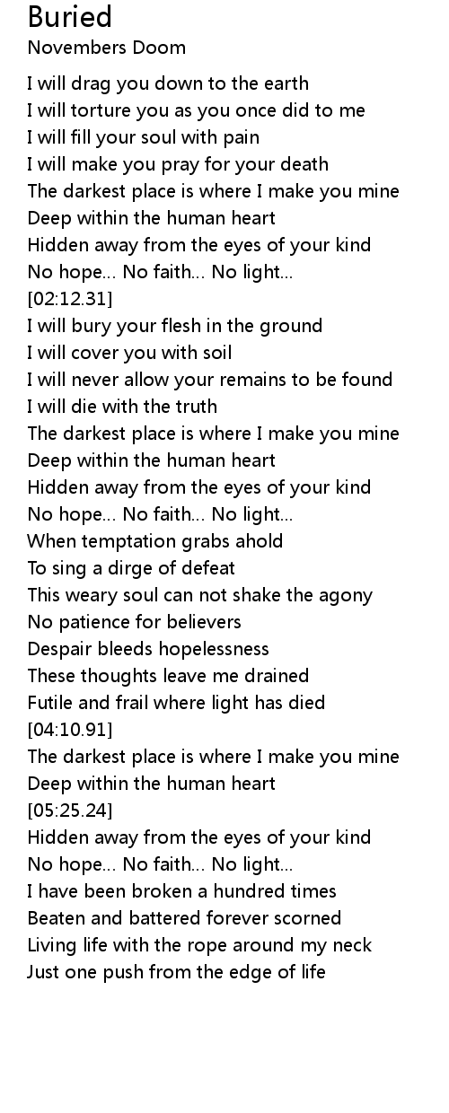 | [02:15.15] | I will bury your flesh in the ground |