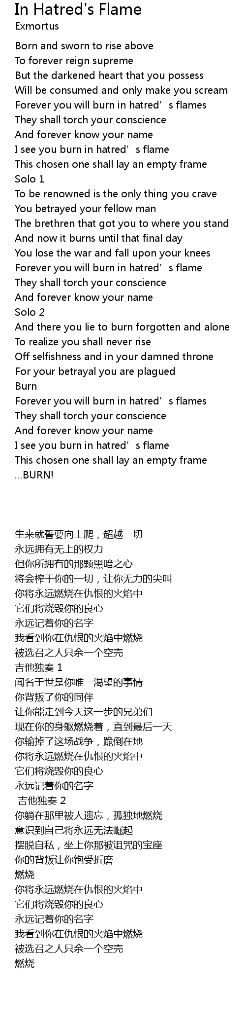 | [00:51.56] | Forever you will burn in hatred’s flames |