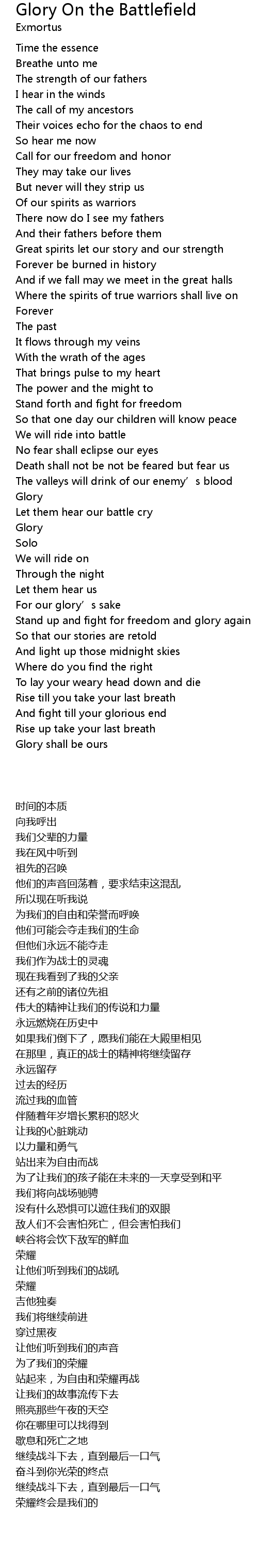 | [02:55.33] | Stand up and fight for freedom and glory again |
