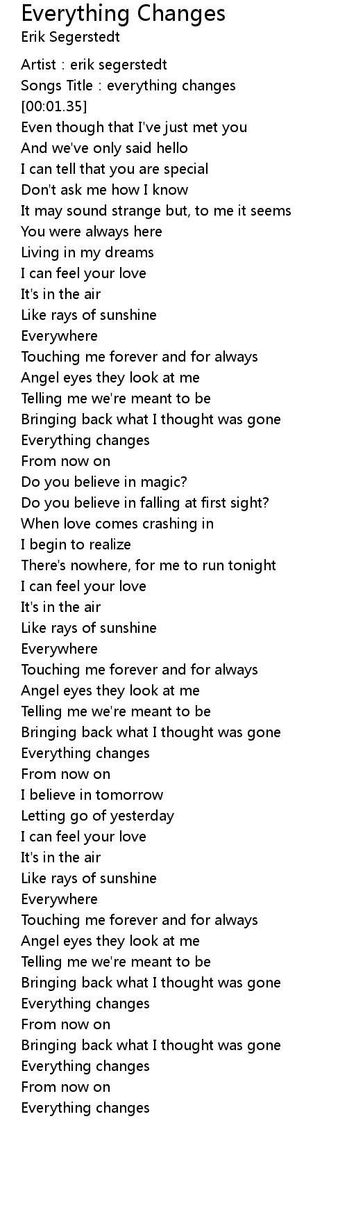 | [00:01.16] | Songs Title: everything changes |