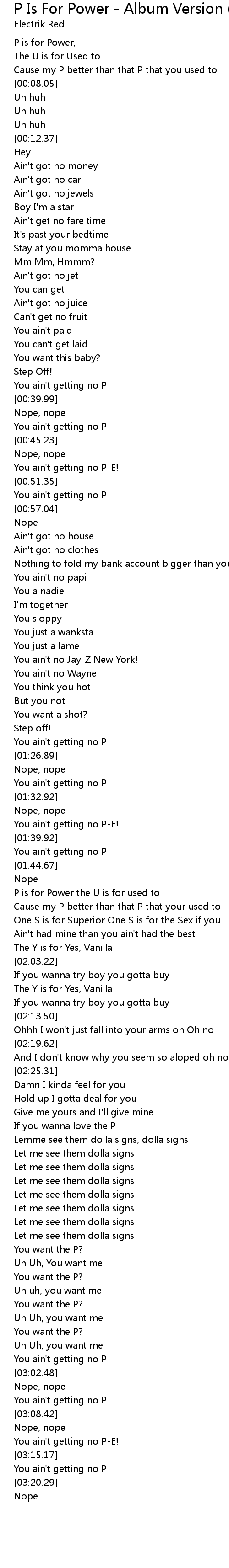 Cause my P better than that P that you used to |