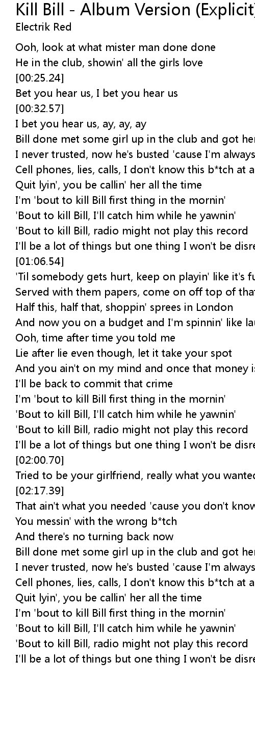 'Bout to kill Bill, radio might not play this record |