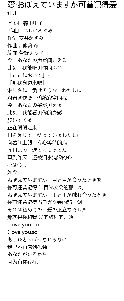 | [00:58.108] | おぼえていますか 目と目が会ったときを |