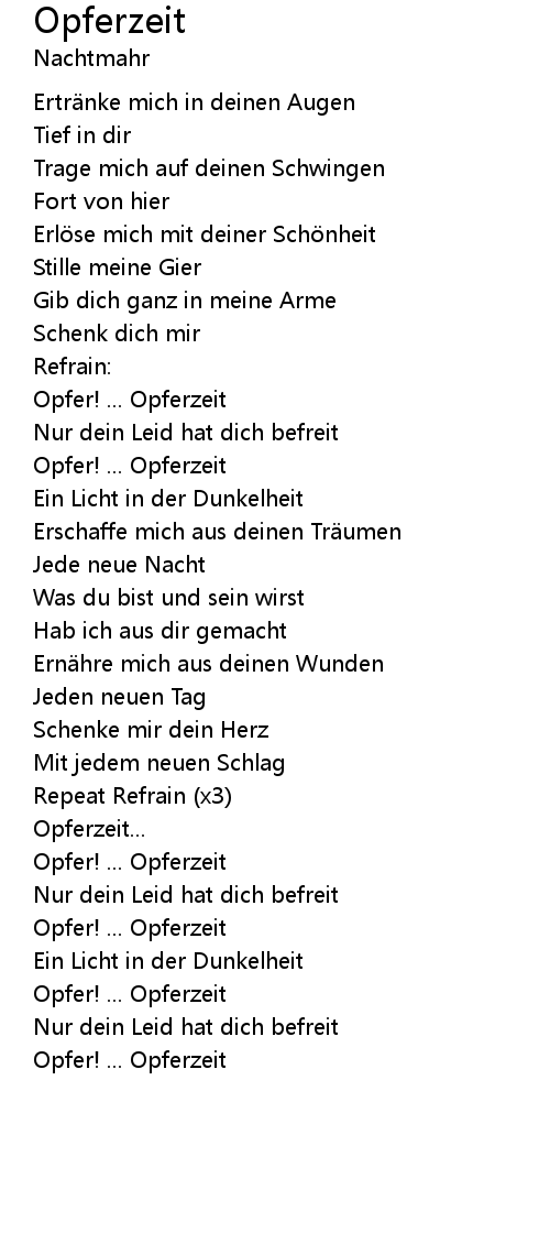 | Song | Opferzeit |