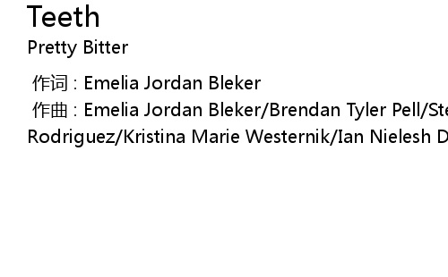 | [00:00.000] | 作曲 : Emelia Jordan Bleker/Brendan Tyler Pell/Stephen Walter Rodriguez/Kristina Marie Westernik/Ian Nielesh Dandridge |