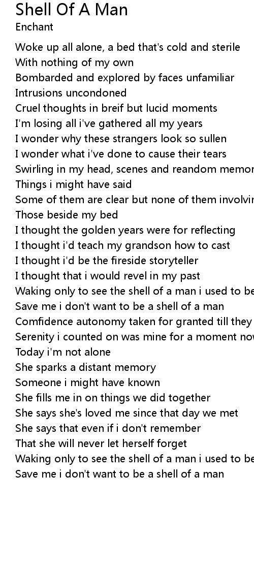Save me i don't want to be a shell of a man |