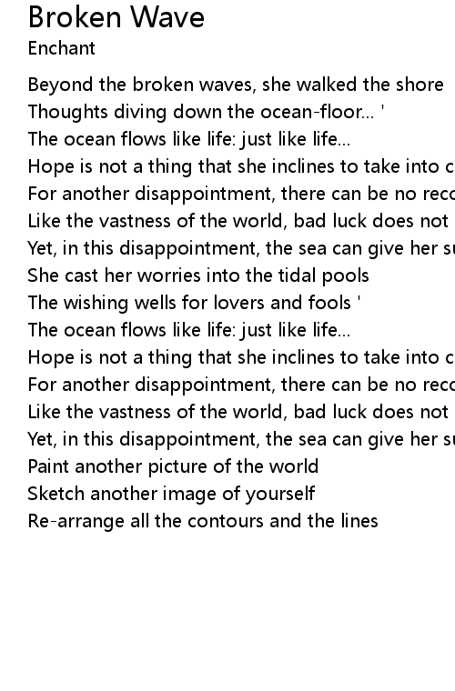 Beyond the broken waves, she walked the shore |
