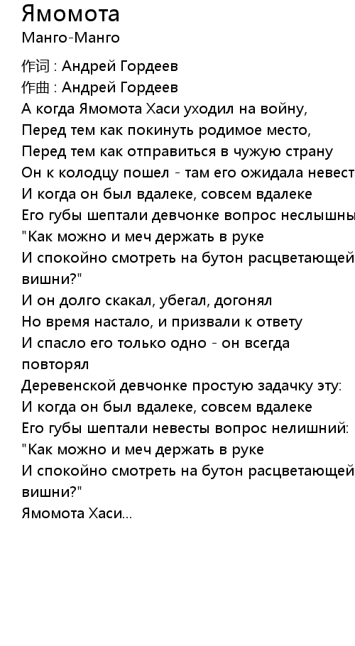 А когда Ямомота Хаси уходил на войну, |